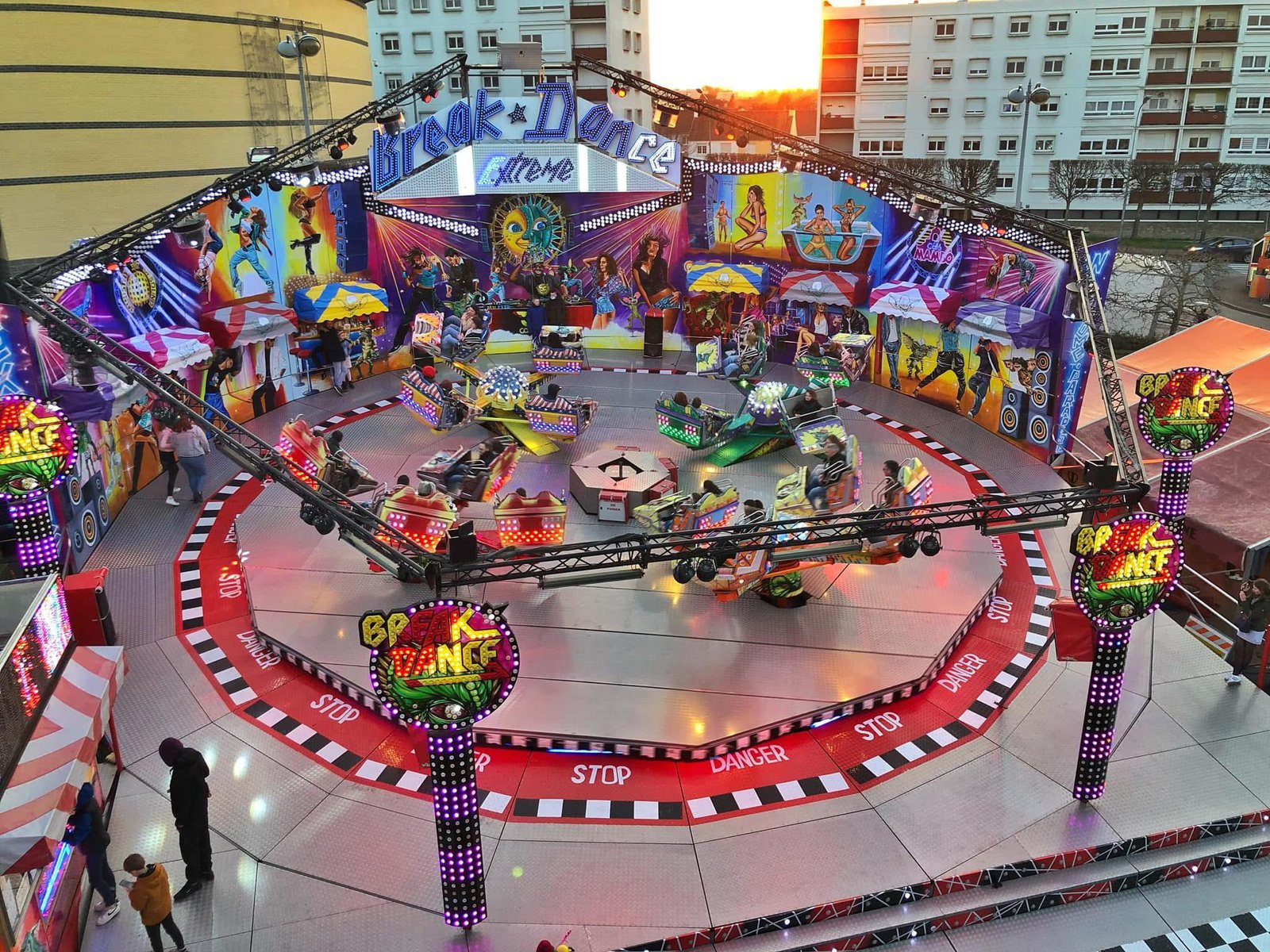 Le Break Dance Extrême est l’un des manèges les plus spectaculaires et populaires. Construit par Sobema, ce modèle est une version améliorée et plus intense du célèbre concept développé par Huss Park Attractions. Présent sur de nombreuses fêtes foraines en France, il attire chaque année des milliers d’amateurs de sensations fortes.